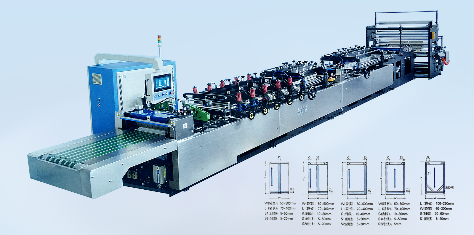 YSZD-400B Ⅱ中封、三邊封、四邊封高速全自動(dòng)制袋機(jī) YSZD-300/400/500ZF中封、側(cè)封、四邊封高速全自動(dòng)制袋機(jī) YSZD-500ZF中封、側(cè)封、四邊封高速全自動(dòng)制袋機(jī) YSZD-500/600/700/800/1000H三邊封高速全自動(dòng)制袋機(jī) YSZD-600C無(wú)接縫站立袋三邊封、站立袋高速全自動(dòng)制袋機(jī) YSZD-500HK三邊封、站立袋、拉鏈袋、無(wú)接縫站立拉鏈袋、儲(chǔ)料架高速全自動(dòng)制袋機(jī) YSZD-600HB三邊封、站立袋、拉鏈袋高速全自動(dòng)制袋機(jī) YSZD-600HK三邊封、站立袋、拉鏈袋、無(wú)接縫站立拉鏈袋高速全自動(dòng)制袋機(jī) YSZD-600HK Ⅰ上下圖案跟蹤三邊封、站立袋、拉鏈袋、無(wú)接縫站立拉鏈袋高速全自動(dòng)制袋機(jī) YSZD-600HK Ⅱ CCD視覺(jué)定位裁切三邊封、站立袋、拉鏈袋、無(wú)接縫站立拉鏈袋高速全自動(dòng)制袋機(jī) YSZD-800HK三邊封、站立袋、拉鏈袋、無(wú)接縫站立拉鏈袋高速全自動(dòng)制袋機(jī)
